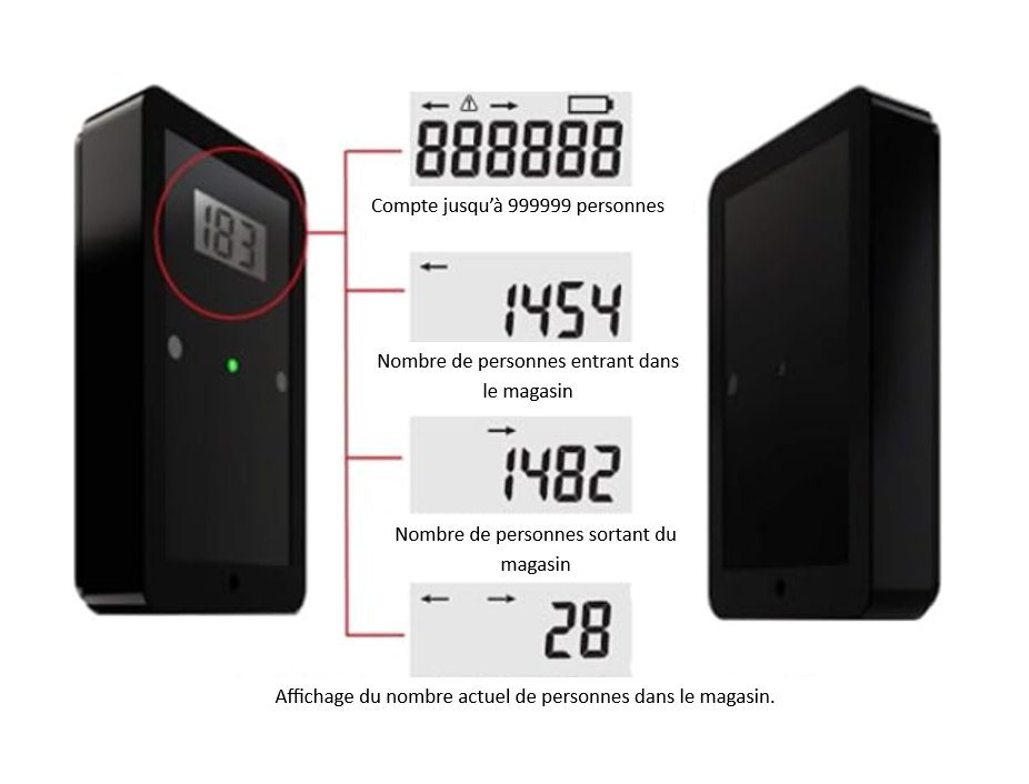 Ce compteur à barrière infrarouge est particulièrement adapté aux petits écartements, idéal à l’entrée d’une petite boutique, d’une bibliothèque ou CDI où de tout espace de taille modeste. Il comptera le nombre de personnes entrées, sorties ou encore présentes en temps réel.