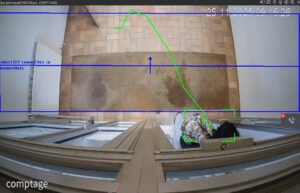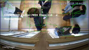 La caméra analyse le mouvement de la personne et incrémente le comptage lorsque celle-ci a rempli les critères définis, tels que le franchissement complet d’une ligne virtuelle, une trajectoire valide dans la zone d’intérêt, une durée de présence minimale ou l’absence de retour en arrière (anti-rebond), afin d’éviter les doubles comptages et garantir une précision optimale du comptage.